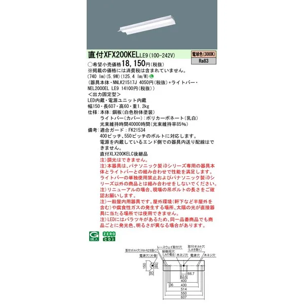 パナソニック iDシリーズ 天井直付型 20形 一体型LEDベースライト 反射笠付 XFX200KELLE9 電球色(3000K)