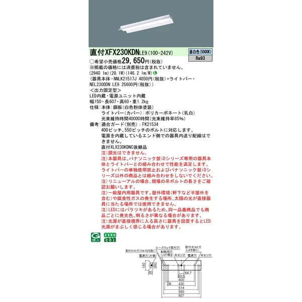 パナソニック iDシリーズ 天井直付型 20形 一体型LEDベースライト 反射笠付 XFX230KDNLE9 昼白色(5000K)