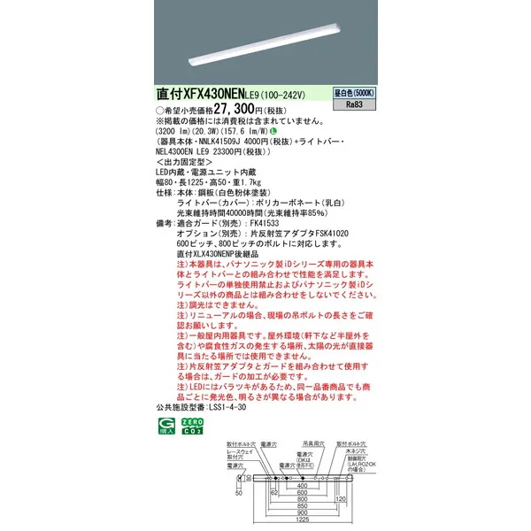 パナソニック iDシリーズ 天井直付型 40形 一体型LEDベースライト iスタイル W80 XFX430NENLE9 昼白色(5000K)