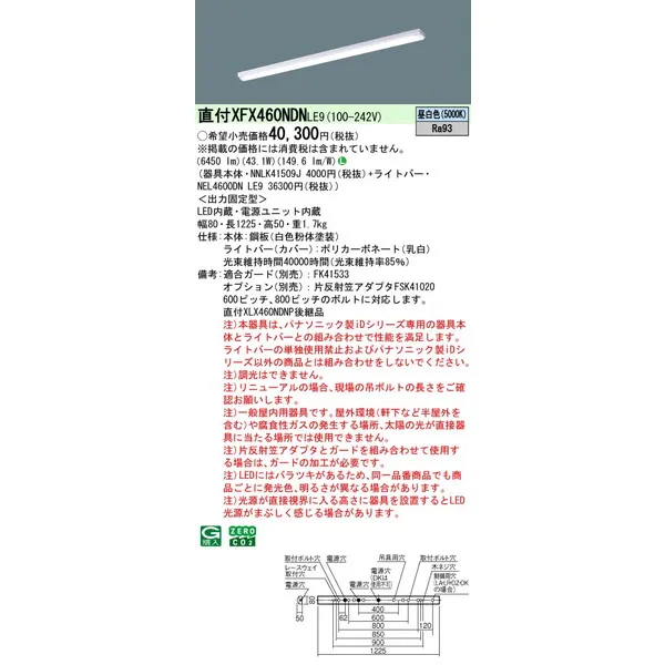 パナソニック iDシリーズ 天井直付型 40形 一体型LEDベースライト iスタイル W80 XFX460NDNLE9 昼白色(5000K)