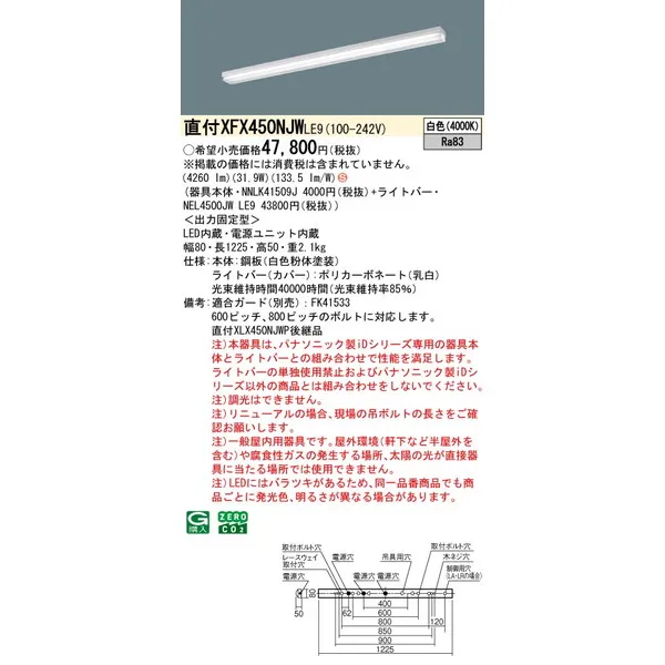 パナソニック iDシリーズ 天井直付型 40形 一体型LEDベースライト iスタイル W80 XFX450NJWLE9 白色(4000K)