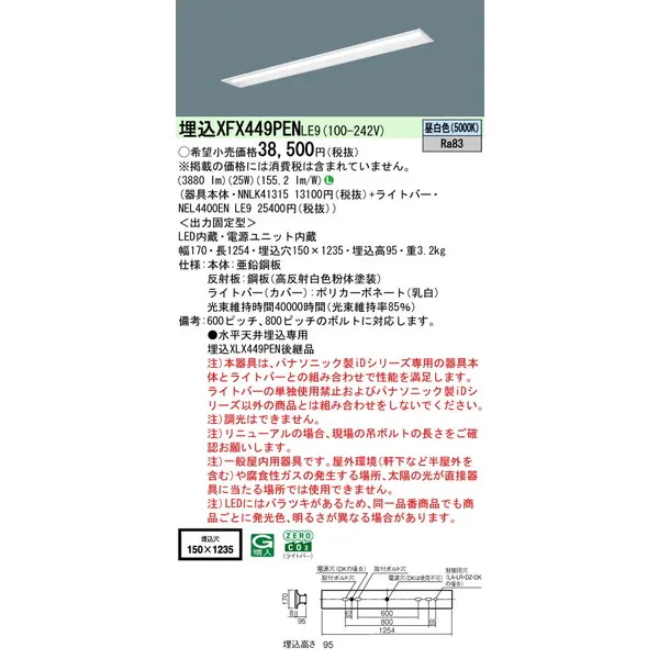 パナソニック iDシリーズ 天井埋込型 40形 一体型LEDベースライト リニューアル 下面開放型 W150 XFX449PENLE9 昼白色(5000K)
