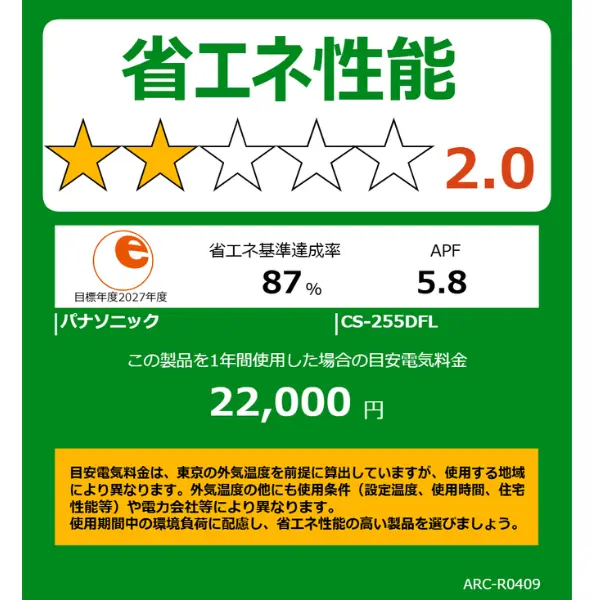 (JIS C 9612:2013)815kWh 省エネ基準達成率/通年エネルギー消費効率