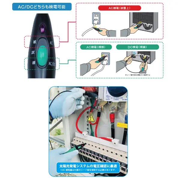 AC検電は裸線/被覆線の感度切切り換えが可能