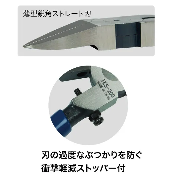 - 切断面がきれいで食い込みがよい薄型鋭角ストレート刃を採用