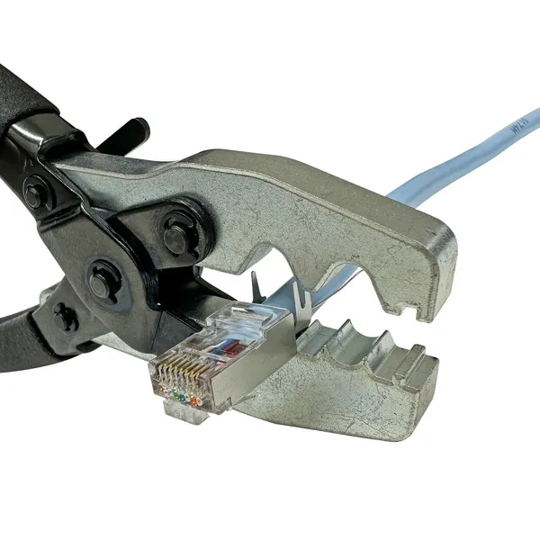 1.モジュラープラグの「ピン部分」を専用の工具で圧着する。