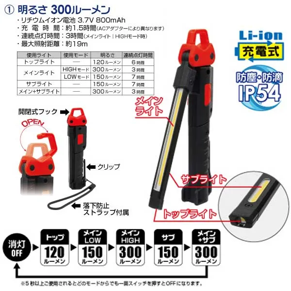 マーベル 折りたたみ式LEDワークライト MWL-300F 300lm