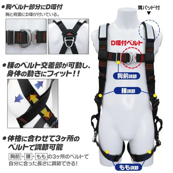 ●本製品は高所作業における墜落災害を防止するためにランヤードと組み合わせて使用する個人用保護具です。その他の用途には使用しないでください。